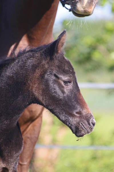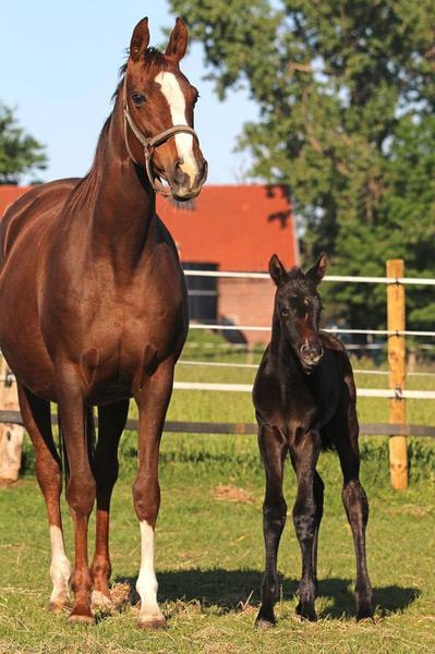 Heute hat unsere Stute Trude ein hübsches und gesundes kleines Stutfohlen von Hickstead White x Quicksilber zur Welt gebracht! Wir freuen uns sehr über diesen Familienzuwachs.